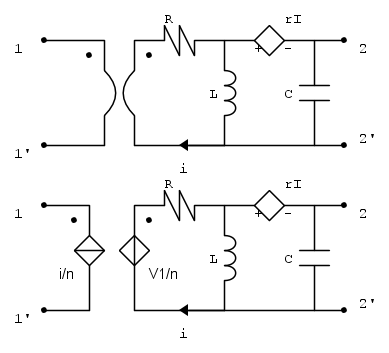 La sostituzione del trasformatore con i due generatori e` fatta in questo modo