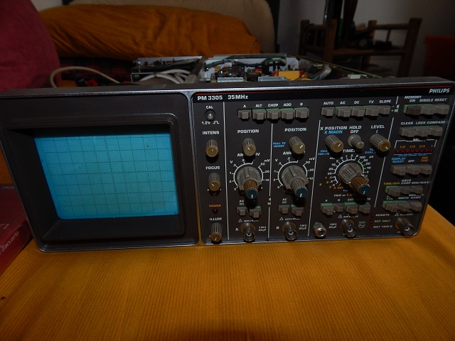 qualche mese fa il meccanico del mio paese mi ha regalato il suo vecchio oscilloscopio philips pm3305 35Mhz con memoria digitale.L'ha sempre usato moltissimo in officina ed infatti quando l'ho ritirato si notavano i segni di usura elettronica:traccia ondulata anche con segnale a massa ed intensità che variava da sola.Ho pensato quindi di sistemarlo e usarlo come oscilloscopio principale(usavo e uso un beckman circuitmate 9020 20Mhz).Ha vinto però la mia pigrizia ed il philips è stato accantonato in questi mesi invernali e mai acceso.Alla fine ieri ho deciso di sitemarlo,ma quando ho provato ad accenderlo purtroppo ho subito constatato che la situazione è notevolmente peggiorata:ora la traccia non appare proprio,i led sul frontalino si accendono e si spengono continuamente e si sente un ronzio molto preoccupante.Ho provveduto quindi a smontare la scheda di alimentazione ed ho testato tutti gli elettrolitici:ebbene a parte un paio di condensatori tutti gli altri avevano valori più che dimezzati e sto provvedendo a sostituirli.Aggiungo che alcuni diodi e il ponte raddrizzatore(ora sostituito) avevano segni di cottura sullo stampato sottostante.