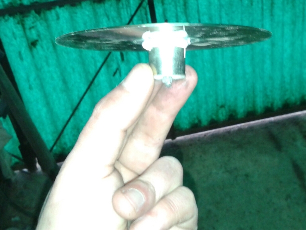 in attesa dell'arrivo del circuito integrato ho costruito la banderuola. alluminio e ferro, cd e un motorino delle vecchie macchinine radiocomandate privato dei magneti che monterò in seguito nella banderuola