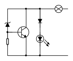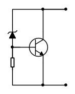 Il transistor è un normale 2N3055 o equivalenti montato su un dissipatore, lo zener un 12V, o meno, perché la tensione complessiva è V zener + la tensione base emettitore del transistor che può arrivare a 1V, per cui misura la tensione effettiva dello zener ed eventualmente inserisci in serie al LED un diodo da un paio di ampere o una resistenzina di protezione. La resistenza sulla base puoi partire con 220 Ohm.