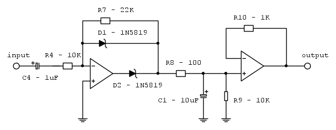 Grazie PietroBaima, di seguito riporto il circuito completo in cui in input viene inviato un segnale proveniente da un preampli microfonico: