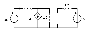 In principio fú questo circuito: dove ora sorge un vuoto c'era un condensatore che a regime é equivalente ad un corto (in DC ovviamente). La tensione ai capi di taglio é esattamente 60, quella del generatore alla destra e bon.