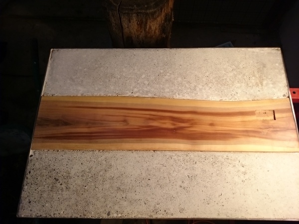 Il telaio di ferro e l'asse di legno di prugno che avevo mostrato in passato sono ora uniti per sempre, grazie alla magia del calcestruzzo