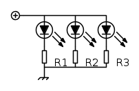Ho visto che il modo più semplice per alimentare i LED è usando dei resistori per limitare la corrente, però mi sorge un dubbio avendo il circuito qui sotto.