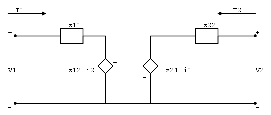 V_1=z_{11}I_1 + z_{12}I_2
