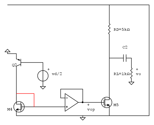 Tornando all'esercizio, dato che devo porre gli emettitori della coppia differenziale a massa, avrei un circuito del genere giusto?