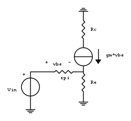 a=-g_m R_c \frac{r_ \pi}{r_ \pi +R_e}