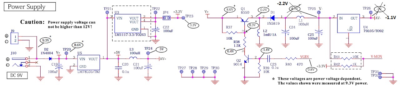 A meno che non siano andati in corto C24 o C25, controlla come mai ci sono solo -2.2 V.
