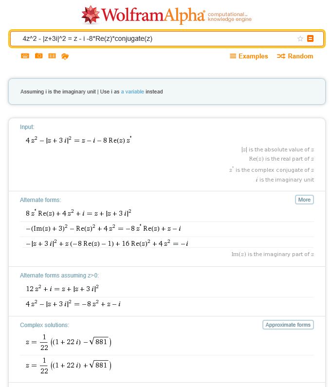 e ponendo parte reale e parte immaginaria uguale a 0, ottengo il sistema: