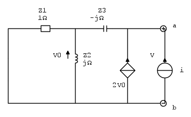 Devo calcolare la Req e la Eeq tra i morsetti a e b. Le mie convenzioni sono: verso positivo tensioni = verso orario, corrente positiva quando esce dal nodo.