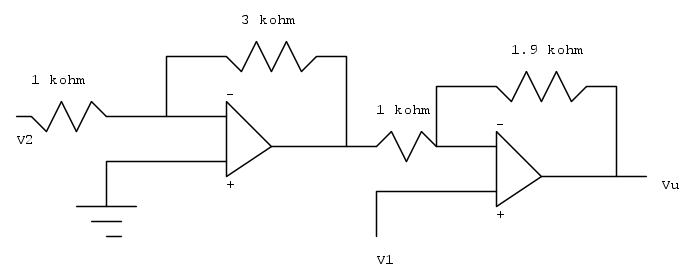 Ho provato come dici tu ma una volta trovata V1 quando provo a trovare V2 non riesco a trovarla perché anche mettendo un partitore non risolvo nulla. L'unico modo penso sia mettere due o più operazionali in cascata ma non ho idea di come si faccia.