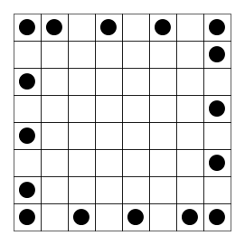 “Da quanto sopra risulta che le pedine devono essere disposte lungo il bordo della scacchiera onde evitare, ad esempio, la presenza di rette diagonali che non intersecano alcuna pedina.”