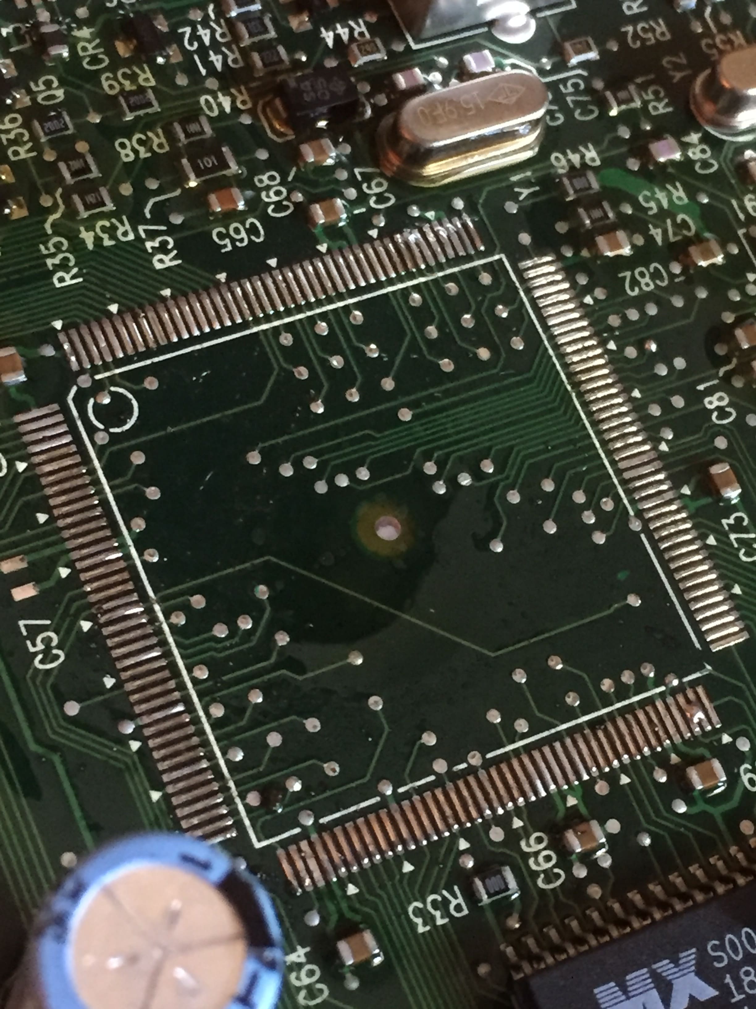 Ho cambiato ugello messo quello da 10 ho alzato l'aria fino a 500 e con un giravite a punta infilato nell angolo di esso insistendo un pó finalmente l'ic è venuto fuori ma sfortunatamente con se se ne sono venute anche 3 piazzole