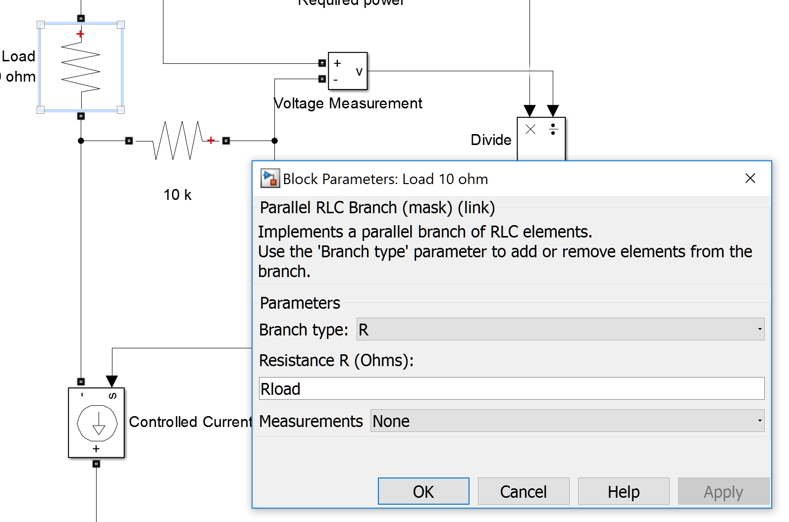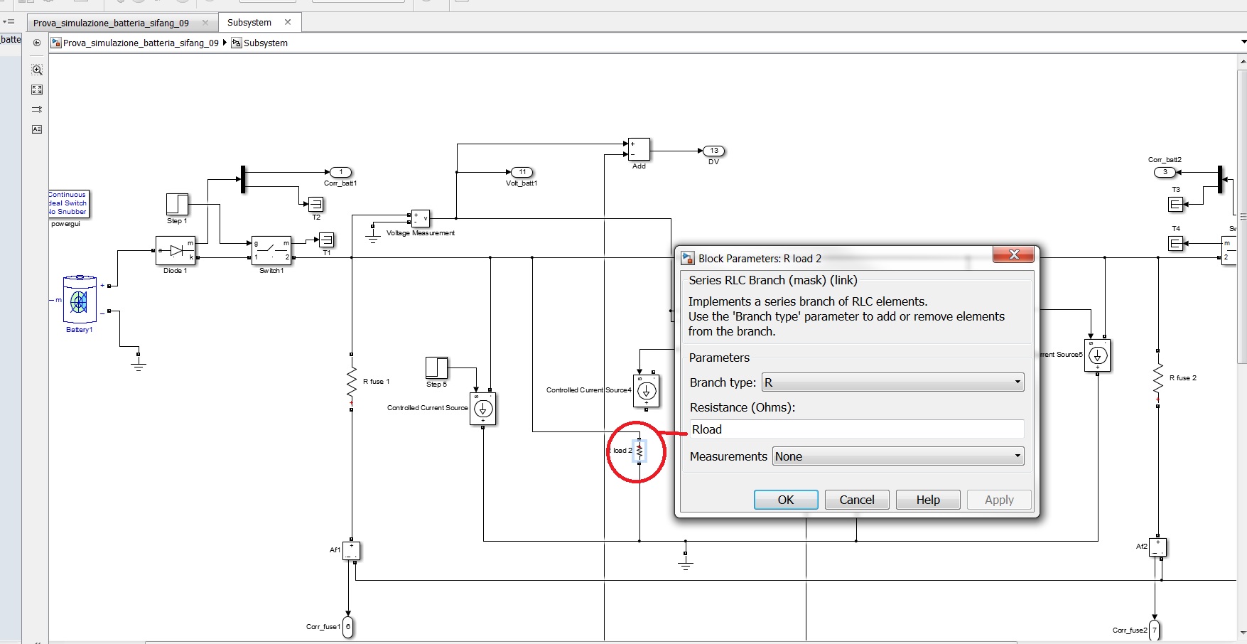 La mia idea era,se possibile, creare nella maschera della prima immagine un parametro variabile che quindi variasse durante la simulazione... Visto che il carico deve essere a potenza costante la mia idea era quella di creare un parametro R=V/I (che varia ovviamente durante la simulazione) e chiamare quindi così la mia Rload.