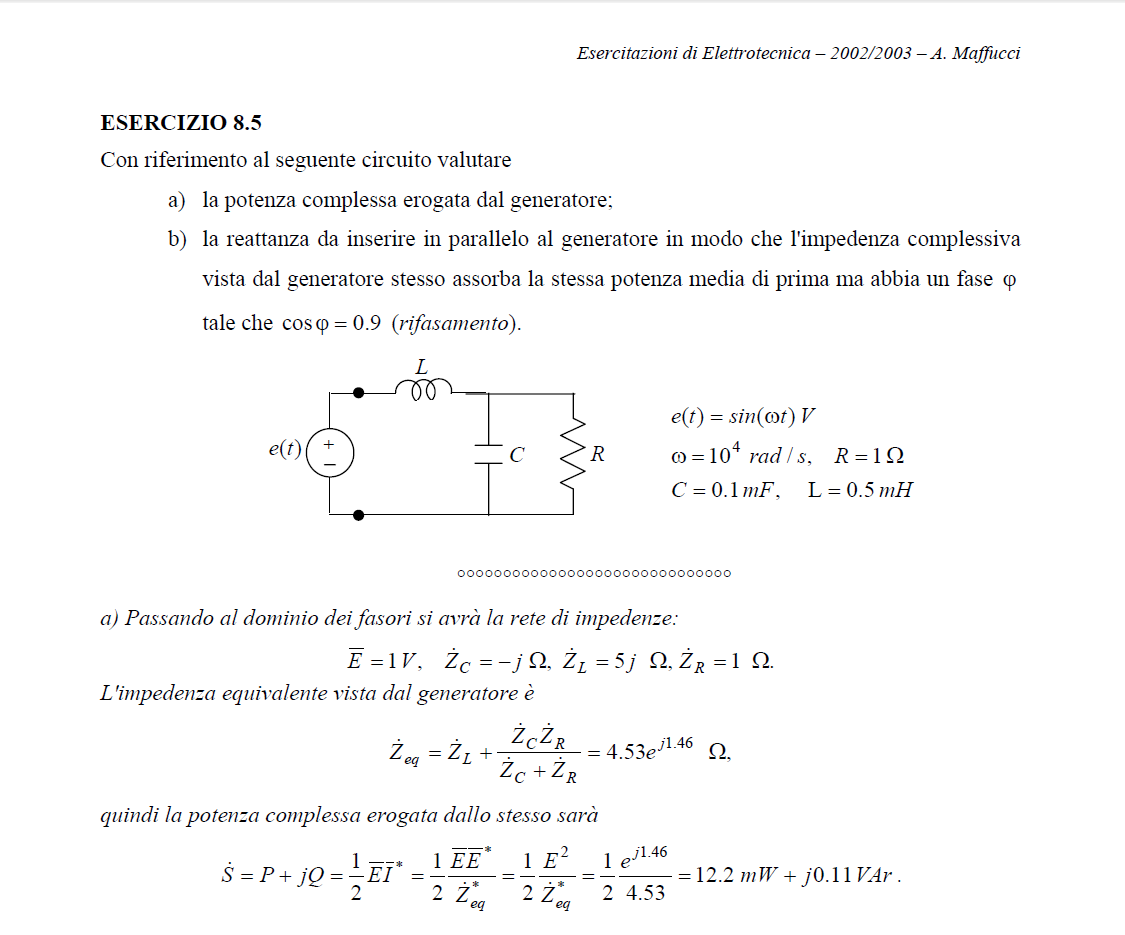 ok, adesso ho capito, però purtroppo non credo sia questo il motivo per cui il risultato è diverso, perché nell'esercizio 9.1, con il primo fasore mi trovo, ed ho utilizzato in entrambi i casi la convenzione del coseno. Possibile che debba utilizzare una convenzione per un generatore, ed un'altra per l'altro? Mi sembra improbabile.. :roll: