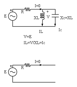 In questo caso il circuito è in risonanza XL e XC si autoeliminano, è come fosse un corto-circuito.