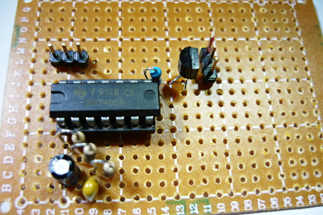 nella foto che segue si possono vedere le connessioni del gruppo di componenti (tre resistori e due condensatori) ai pin 1/2/3/4 del'integrato.