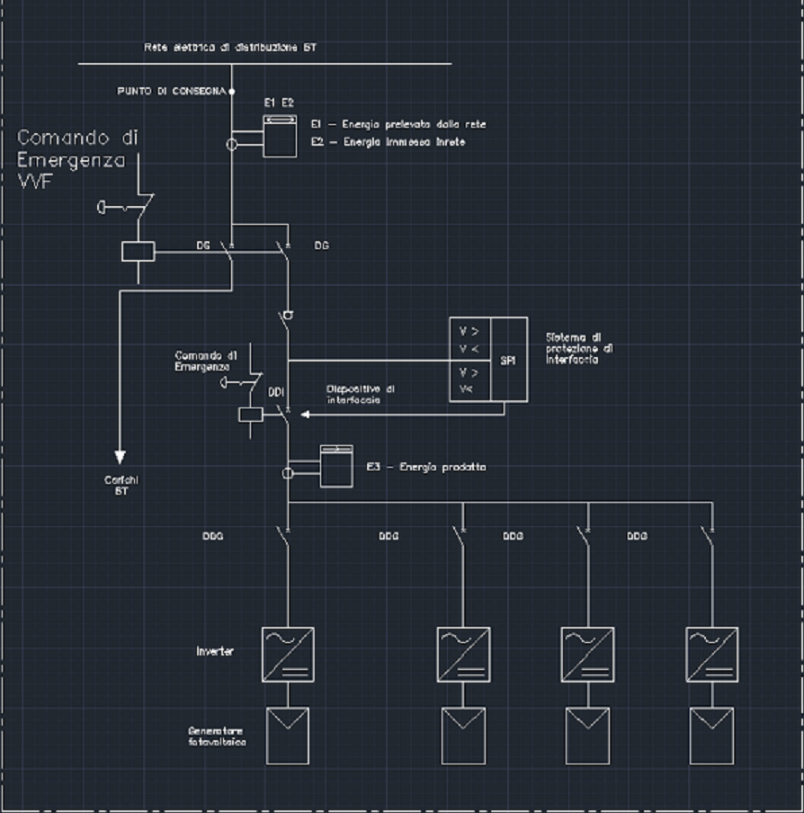 Un ultima cosa ho solo un compartimento antincendio, in caso d'incendio i VVF devono mettere fuori l' unico impianto del compartimento con il comando di emergenza, in questo caso visto che aprono il DG l' inverter che ha la funzione che in assenza di rete si apre, quindi perché montare un secondo pulsante di emergenza per aprire il DG o DDG nel vecchio schema?