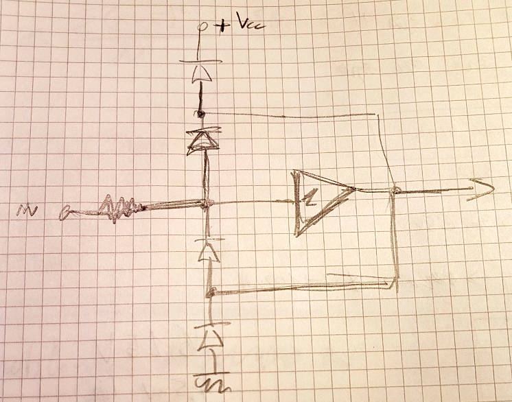 Forse con un amplificatore (ad ingresso mosfet) a guadagno 1 si potrebbe fare in modo che la tensione ai capi dei diodi sia normalmente prossima a zero e di conseguenza anche la corrente.