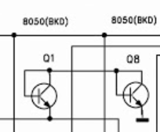 Q1 e Q8 sono collegati esattamente come Q5 e Q6 e "sospetto" che siano anche loro dei 2N3904 (in realta' esiste un transistor con sigla SS8050 (equivalente al 2SC8050) ma credo che nella tua applicazione I 2N3904 vadano bene)