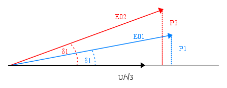 sulla tensione ai morsetti di macchina, quest'ultima identica per tutte le macchine in parallelo. Le fasi delle singole f.e.m dei diversi generatori, non sono necessariamente uguali. Dipendono dalla potenza attiva erogata.