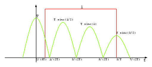 Il dubbio è che facendo la convoluzione con il coseno, quindi il prodotto nel dominio delle frequenze, il risultato dovrebbe essere zero in quanto il coseno ha solo due armoniche a frequenza \frac{1}{T} e a quelle frequenze la |W(f)| è nulla.
