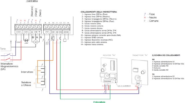 ciuno ha scritto:2) il collegamento n.12 in ingresso della centralina non dev'essere collegato con l'uscita della fotocellula n.5 perché entrambi sono segnati con NC? Mentre il n.11 della centralina segnato come "comune" dovrebbe essere collegato con il n. 4 della fotocellula segnato anch'esso con "comune"?