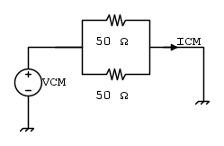 Nello schema illustrato di seguito, il trasformatore è usato per isolare il segnale di modo comune da quello differenziale. Il center-tap del trasformatore è collegato al ground, il segnale differenziale è chiuso su 50 Ohm. Qual è l´impedenza che vede il disturbo di modo comune ?