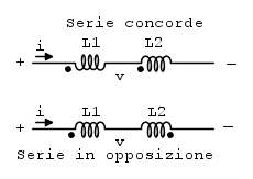 Se la corrente entra dal terminale con il pallino di una bobina, la direzione di riferimento della tensione mutuamente indotta nella seconda bobina ha il segno positivo nel terminale col pallino della seconda bobina.
