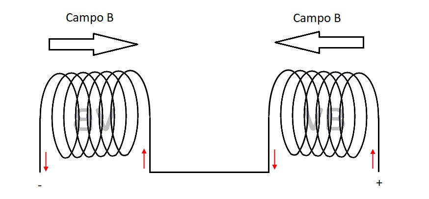 Buonasera a tutti, è vero che invertendo il senso di rotazione di un avvolgimento si inverte anche il campo B? Ho fatto un disegno perché si capisca meglio la domanda. Ho supposto di collegare due avvolgimenti in serie , nel primo a destra entra il polo positivo e secondo la legge della mano destra risulterebbe corretto che il campo B va da destra a sinistra. Nella seconda bobina a sinistra ho invertito il l'avvolgimento pertanto mi aspetto che il campo B vada da sinistra a destra come descritto nell'immagine.
