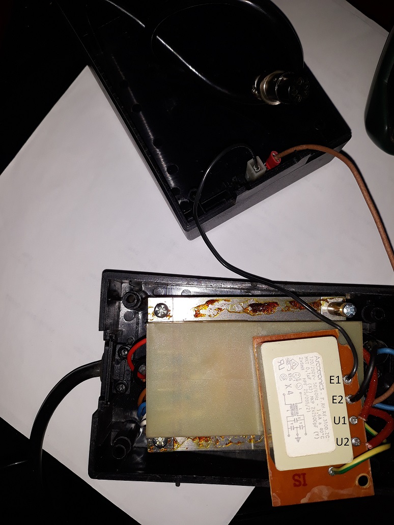 Dunque, all'interno dell'alimentatore vi è un filtro antidisturbo e volevo capire se il problema fosse quello. Ho controllato il cavo che dalla corrente va fino al filtro su circuito stampato con il tester, in figura ho chiamato i poli (E1-E2) ed è OK . Per vedere se il filtro funziona basta che controllo con il tester in corrente alternata le uscite dal filtro segnate come (U1-U2) giusto?