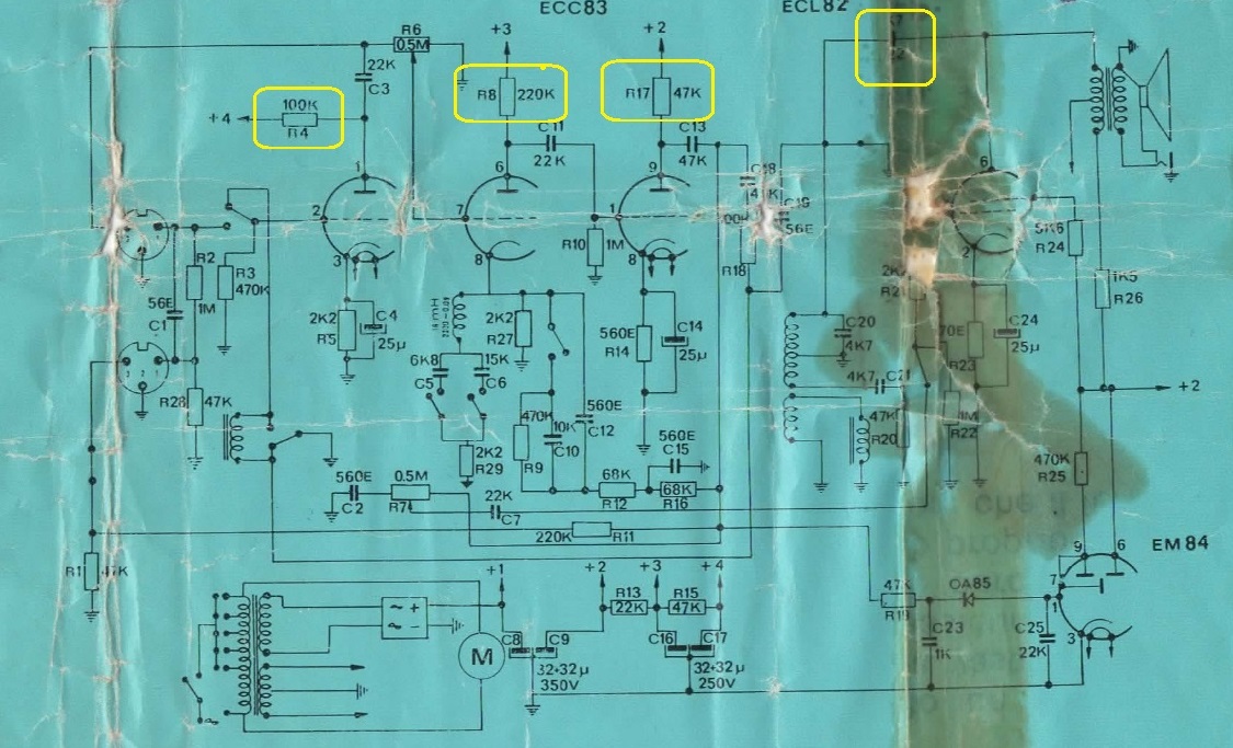 Certo che ne ho voglia, lo schema era incluso nell'apparecchio ma essendo molto datato è un po scarno e le tensioni non sono scritte esplicitamente.