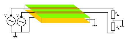 In realta' puo' essere anche una considerazione implicita ma per me anche no. Nel senso che quello e' un sistema differenziale in quanto se fosse single ended non avrebbe una linea di ritorno come disegnato li'. A meno che non si tratti di una guida d'onda o di un'antenna, una linea di trasmissione e' comunque sempre composta da due conduttori, di cui uno e' il riferimento (massa o come vuoi chiamarlo).