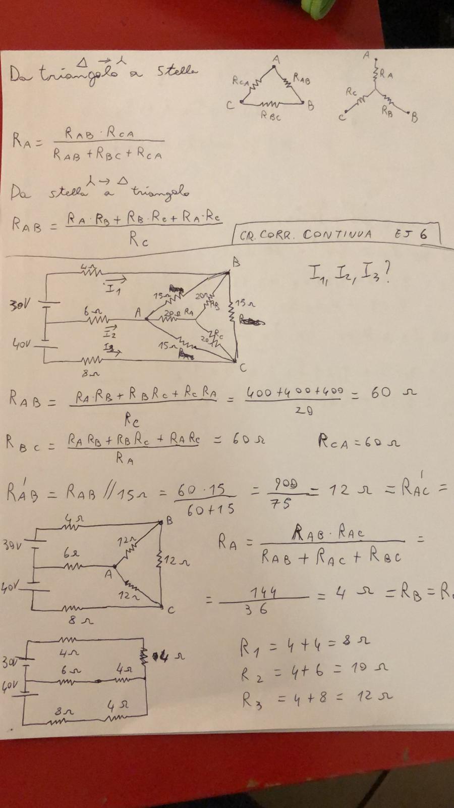 Ne approfitto per segnalarti un trucchetto utile, notando gli appunti e le formule sulle trasformazioni stella triangolo, nel caso non ne fossi a conoscenza. Se e solo se hai un triangolo con le resistenze tutte uguali, ti basta prenderne una e dividerla per tre per costruire poi la stella.