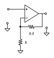 avremo che il guadagno di tensione risulterà pari a \frac{R_f}{R}+1 in quanto applicando una tensione al morsetto non invertente e dovendo l'uscita variare il proprio potenziale per portare al medesimo potenziale il morsetto invertente, l'opamp guadagnerà in tensione di una quantità pari al rapporto di partizione del partitore più una ulteriore volta... (sperando essermi espresso in modo comprensibile e soprattutto che gli elettronici non mi bastonino per la trattazione ben poco rigorosa #-o ...).