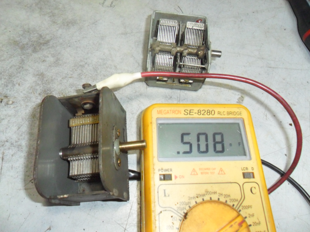 io ho questi due condensatori, uno singolo da 500 pF max e 35 min, l'altro è doppio da 430 + 430 pF 25 + 25 pF min.