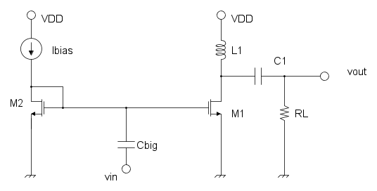 Cbig è un condensatore grande che possiamo considerare un circuito aperto a frequenza 0 e circuito chiuso a tutte le altre (come modello matematico).