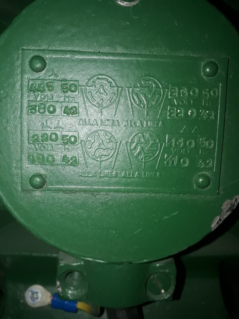 Oh, ed ecco spiegato l'arcano del funzionamento a 380 V; il cablaggio attuale è una connessione a stella per i 380 V a 42 Hz quindi il precedente proprietario lo faceva funzionare a 380 50 Hz il che fa girare il motore a una velocità superiore a quella nominale... per il resto lascio la parola agli altri utenti più esperti.