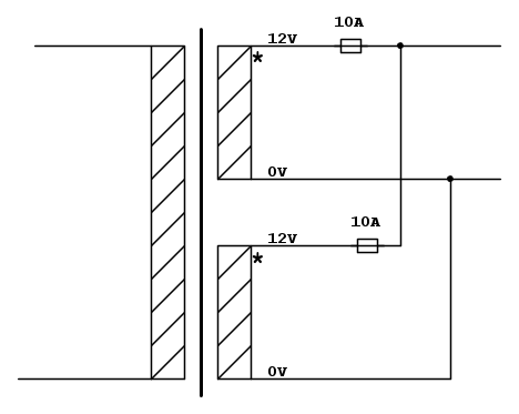Ho un trasformatore con 2 secondari, da 10 A/12 volt l'uno, messi in parallelo dovrei ricavare al massimo 20 A.
