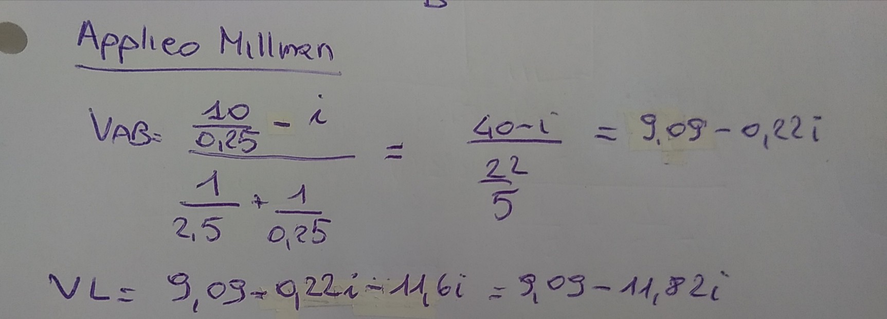 Al circuito così trasformato ho applicato prima un LK e poi il Teorema di Millman.