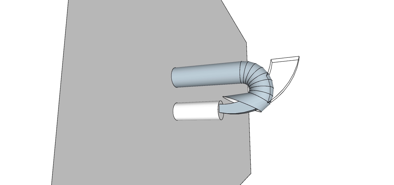 in questo modo, il fumo dovrebbe quasi 'naturalmente' incanalarsi senza impattare l'alimentazione e lo scarico della caldaia, così come è ora.