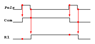 1) primo click: Puls=1 con R1=0---> si attiva Com