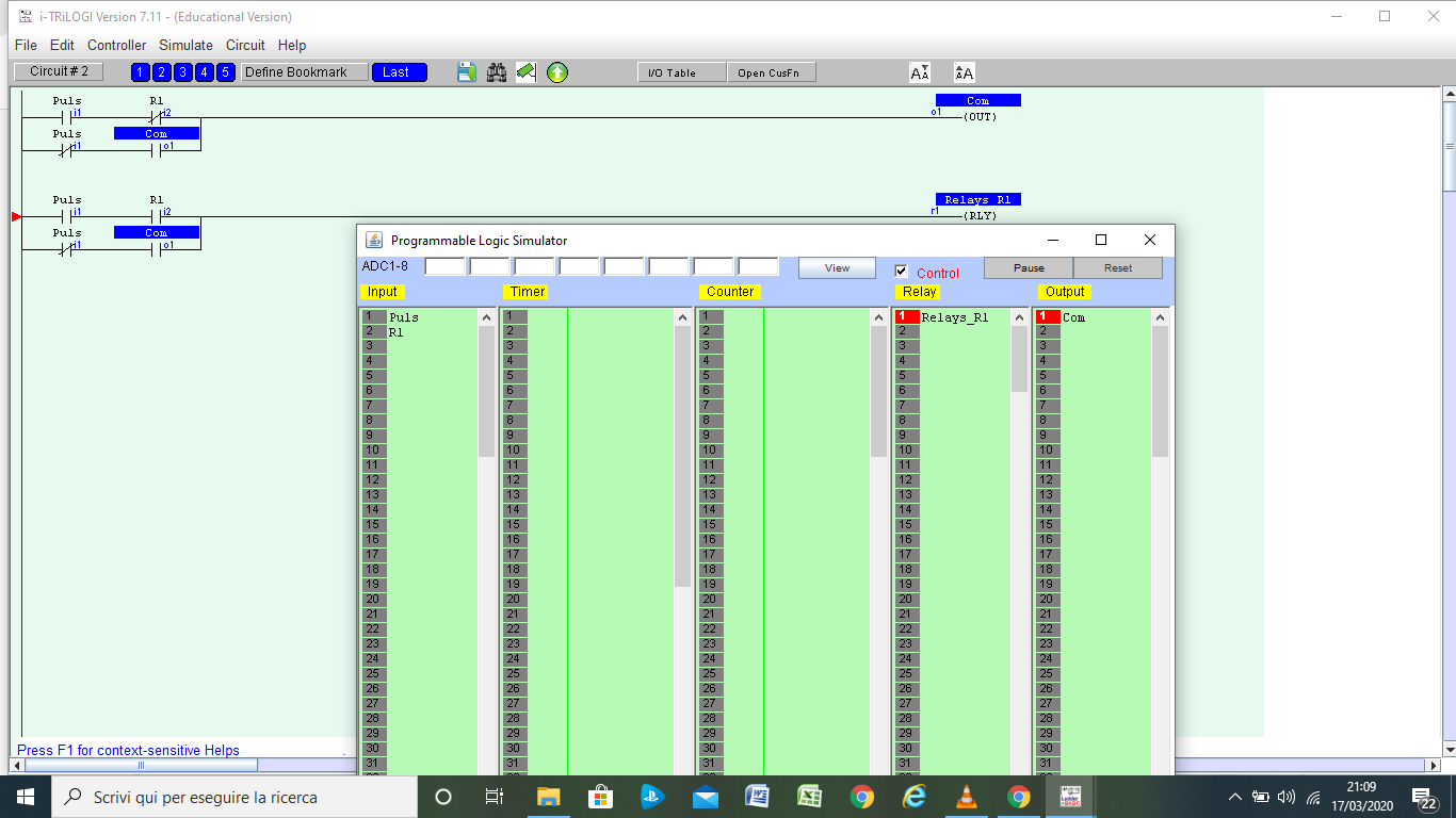 Però continuo ad avere dei dubbi riguardo al suo funzionamento. Innanzitutto come funziona il relè nel simulatore? perché devo utilizzare un Relè di seguito all'ingresso Puls? Cosa cambia da inserire un normale Ingresso NC?