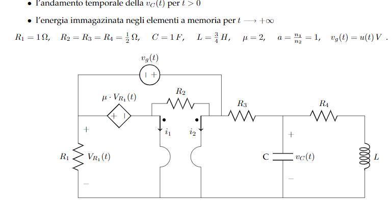 buon giorno, l'unica cosa che mi viene in mente e applicare il thm di thevenin hai capi del condensatore, ma poi quel trasformatore ideale non riesco più a gestirlo.