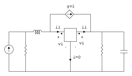 Il punto v1 può venire cortocircuitato con v2, ma allora il generatore gm x v1(t) viene cortocircuitato ed è ininfluente.