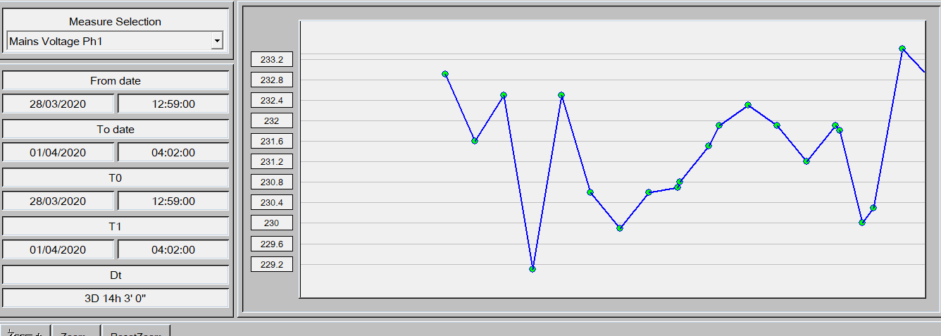 Giusto per non lasciare sospesa questa affermazione, posto uno screen del grafico inerenti la tensione della fase R in ingresso e in uscita dal gruppo di continuità.