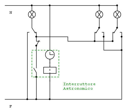 Per semplicità di rappresentazione avevo omesso l'alimentazione (F/N) mi sembrava pacifica, noto però solo ora l'errore di aver usato il simbolo di bobina anziché di interruttore. Ad ogni modo lo schema con l'alimentazione è qui.