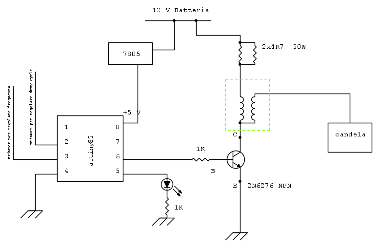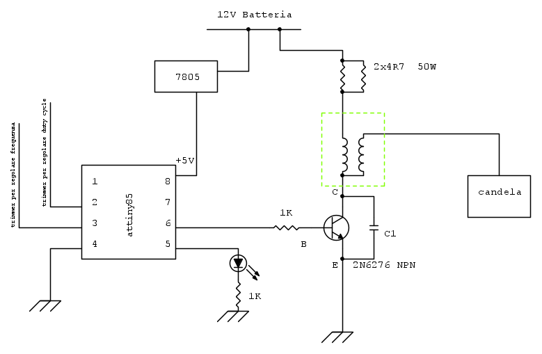 Con condensatore in parallelo al BJT (vedi schema sopra) la scintilla non scatta