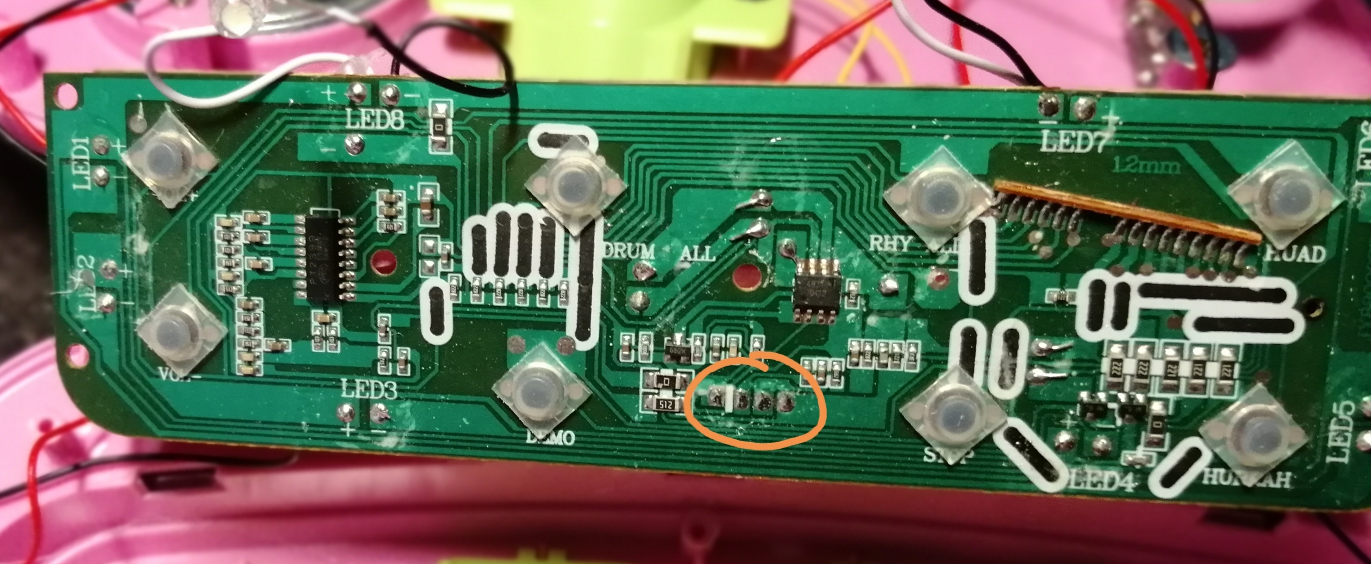 Nel cerchio arrivano i fili dell ingresso mp3 e l'ingresso del microfono