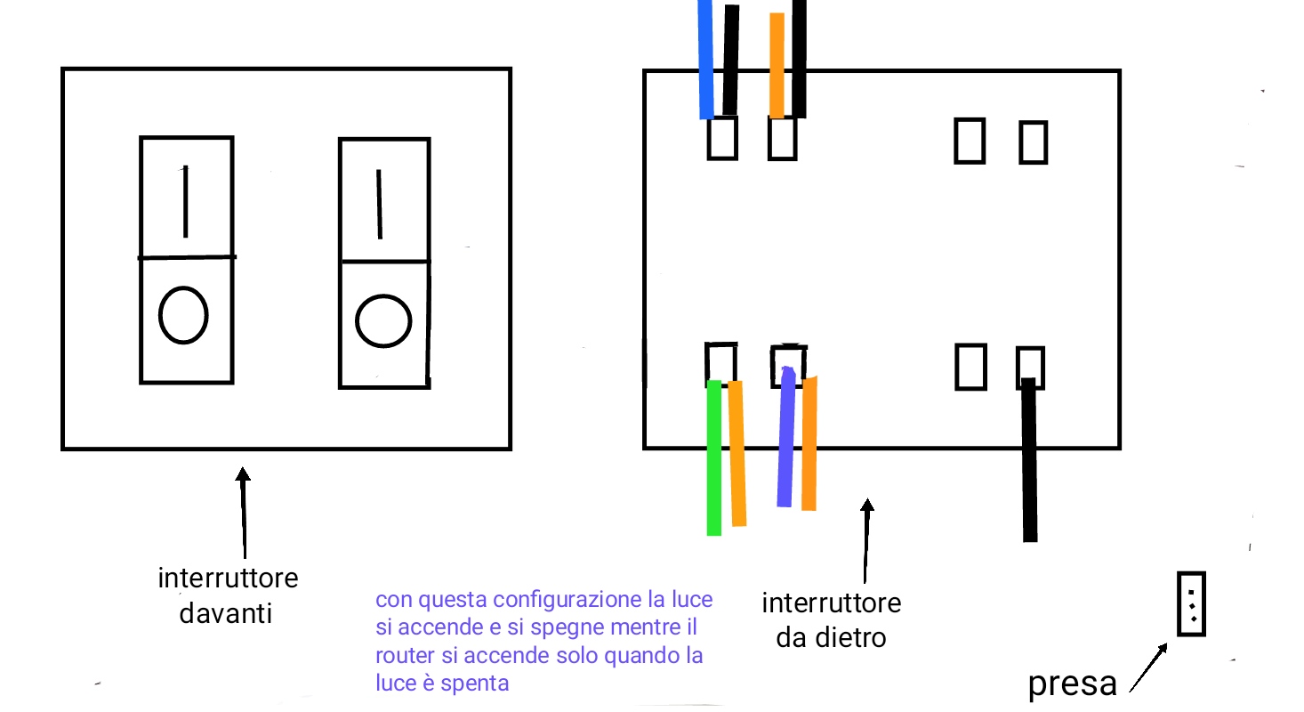 Dopo aver staccato l'interruttore generale ho provato a cambiare i collegamenti ma senza successo, sono riuscita solo ad ottenere la singola accensione del router o della luce ma mai di tutte e due assieme. Quello che vorrei è che il router resti sempre acceso mentre ovviamente la luce si spenga o accenda agendo sull'interruttore.